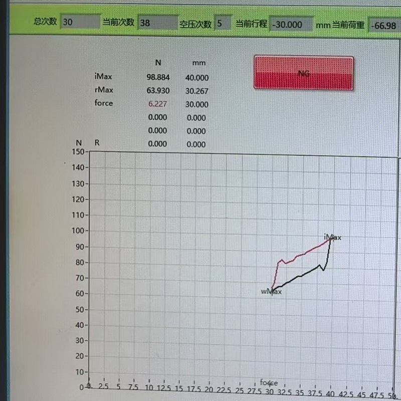 刚度:单位变形量所需的力(N/mm)。测试弹簧在压缩时的力-位移曲线。