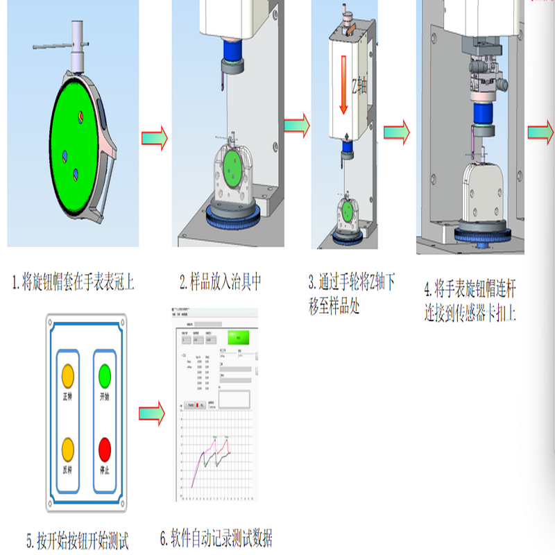 手表旋钮扭力测试步骤: